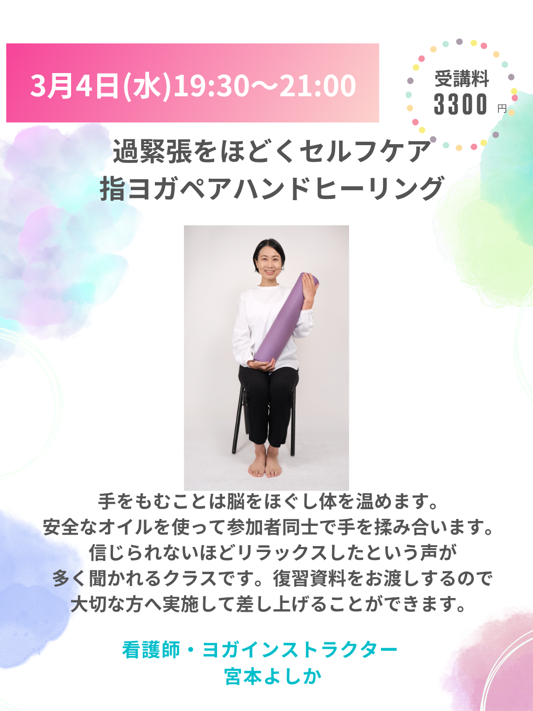 2025年3月4日(水)過緊張をほどくケア 「指ヨガペアハンドヒーリング」